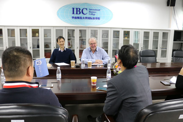 我院副院长柴少明,金融系副主任马赞军,教研室主任逄淑梅与黄绍基和Keith Mckinnell进行了会谈,商讨了金融学专业四年级课程安排事宜。讲座前,Keith Mckinnell教授为金融学15级和16级的学生介绍了房地产培训研究院中国授课点的实践实训课程,欢迎相关专业的师生前往交流。晚上7点,黄绍基副教授为金融学、财务管理专业的师生做了题为“房地产投资:风险可受管理吗?”专题讲座。讲座从市场效率、房地产信托投资基金的作用以及房地产物价指数的作用三个角度,结合香港近20年房地产市场的走向,为有关专业学生了解房地产投资手段和市场供求现状提供了专业化的视角。讲座结束后,黄教授解答了同学们提出的问题。柴少明副院长希望金融学专业的同学以此次讲座为契机,提前了解房地产金融基础知识,为大四阶段的系统性学习打下基础。