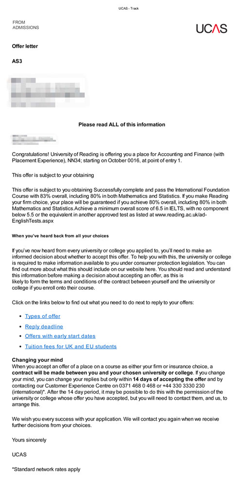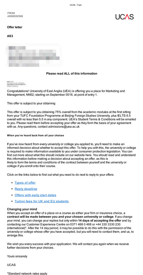 当然,最让人兴奋的还是同学们都得到自己dreamschool的通知书。来自英国巴斯大学、伯明翰大学、约克大学、利兹大学、莱斯特大学、雷丁大学、东安格利亚大学等英国高校的offer纷纷而至。