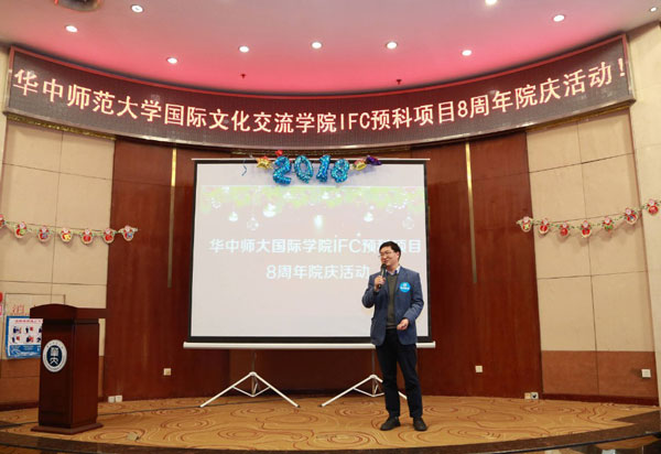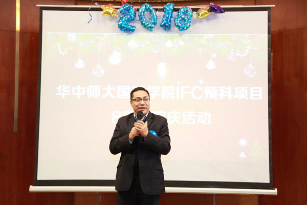 2017年12月24日是圣诞节前夕平安夜,我院IFC预科项目迎来了8周年的庆典活动。本次活动由我院和合作单位东西方国际教育研究院联合举办,我院院长佐斌教授和李志主任、东西方国际教育研究院王伟院长和总监严海霞女士出席活动。共有新老学员55人参加。