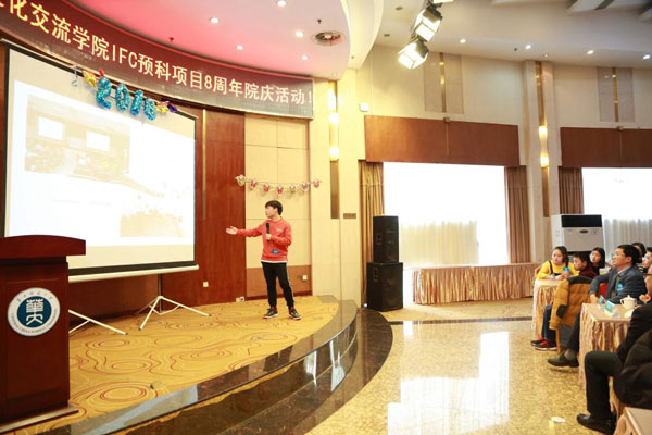晚上六时, 庆典活动开始。佐院长对IFC项目成立8周年表示了祝贺。他通过自己曾经在幼儿园做演讲的感受,把IFC项目比喻为成长中的小朋友,他说8年来,IFC走过了精彩的历程,通过不懈努力也是在不断的成长。佐院长通过对国内外教育的对比,表示留学可以给学生们更多的选择和思考的空间。他说他对IFC预科项目充满信心,并希望IFC越办越好。