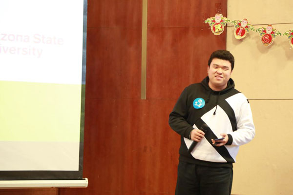 明翼同学以风趣幽默的演讲形式分享了他在美国生活的真实体会,他提到在海外的学习和生活没有想象的那么容易,所有的事情都需要自己去做,比如:装家具、看病、做饭等。他还分享了他的省钱小秘籍,就是一定要提前做好预算,这些实用的生活小经验给在座的学弟学妹们很多的帮助。