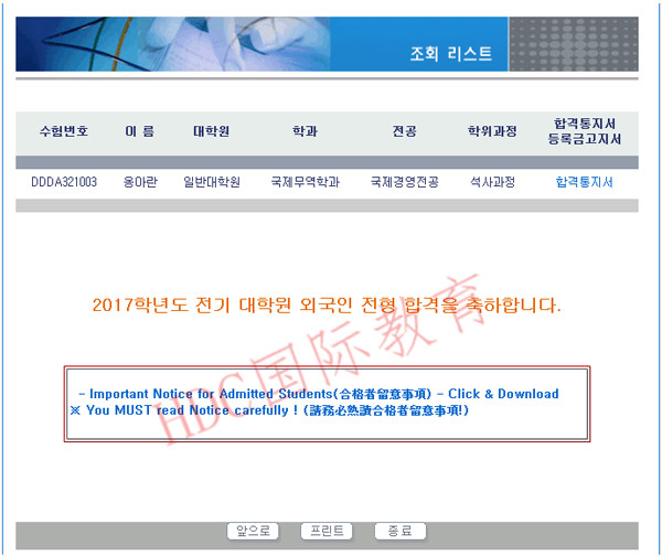 近日,HDC国际教育的两位同学收到了来自建国大学的研究生录取通知,经过层层选拨,最终得到了学校教授的认可,拿到了心仪的Offer,这两位同学申请到的专业是传媒专业和国际贸易专业。恭喜他们!也祝愿HDC所有的同学学业有成!