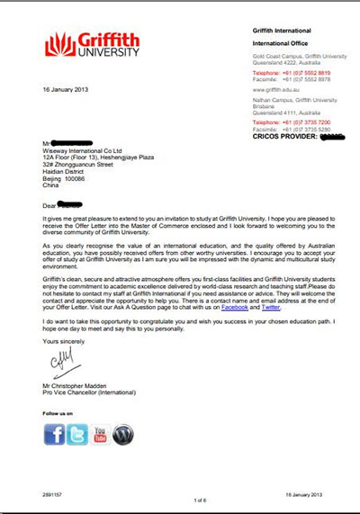 录取院校:澳洲格里斯大学