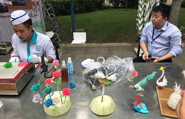 美食节活动不仅让同学们领略到各地美食的风采,同时还进行了知识问答等有趣的活动。食堂的大厨们也全都亲自出马,不仅像同学们展示了糕点的制作过程,还亲自教授同学们怎样做菜,寓教于乐。