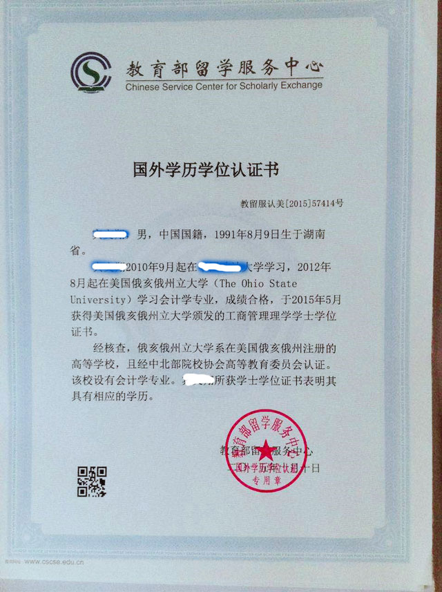 国外学士学位认证证书