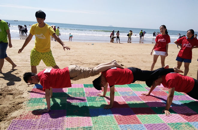 同学们深知在相互了解之后才有助于课堂上的小组讨论及分组作业,为了更快地彼此了解,国际班16级同学自行组织了一场户外拓展活动,还特意邀请了15级优秀师哥师姐代表参与分享学习的经验与心得,于8月27日(周六)在石老人海水浴场举办RUNNING MAN的活动。