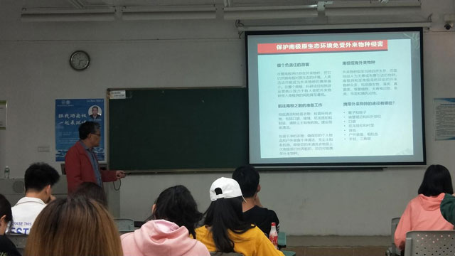 12月17日下午,中山大学新华学院国际学院康星华副教授为国际学院和国际本科全体大一新生送上了一场别开生面的科普知识讲座--《跟我游南极,一起来环保》。