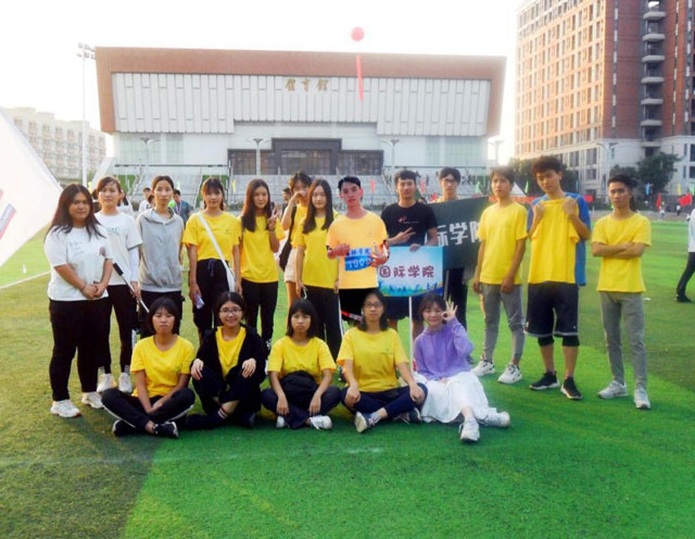 运动会接近尾声,国际学院工商管理(国际班)同学们依旧沉浸在竞赛的兴奋中,他们恋恋不舍,在运动场上留下了集体的倩影。
