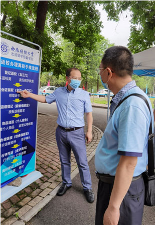 6月16日,欧兵副校长、张邦富副校长在学院结业学生返校工作区域指导工作。