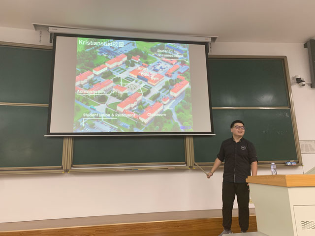 来自瑞典林奈大学的Henrik先生是北欧项目的老朋友,他首先提到了和我们长期合作的历史,多年来每年均有数名同学前往瑞典林奈大学就读不同专业,学生生源质量稳步提升。接下来Henrik用熟练的中文介绍了瑞典作为充满创新精神的国家,在科技、人文、社会发展、高等教育等领域所取得令人瞩目成就,以及林奈大学的英文授课本科硕士及博士专业设置情况,对到场的学生和家长介绍了很多瑞典学习和生活的优势做了详细介绍。