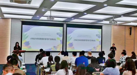 跨境教育中心主任丁晓玉老师代表全体教师表达了对新生的热烈欢迎,并且希望同学们不仅要在生活方面自律自强也要在学习上锐意进取,她提出三点对新生的建议:第一点希望新生们独立生活,真诚交往,处理好人际关系,调整心理落差;第二点希望同学们珍惜时间,把握青春,为自己的美好未来打好下坚实的基础,第三点希望同学们心怀感恩,承担责任,特别在疫情严峻局势下,舍小我成大我,严格遵守学校的规定,承担社会责任?。