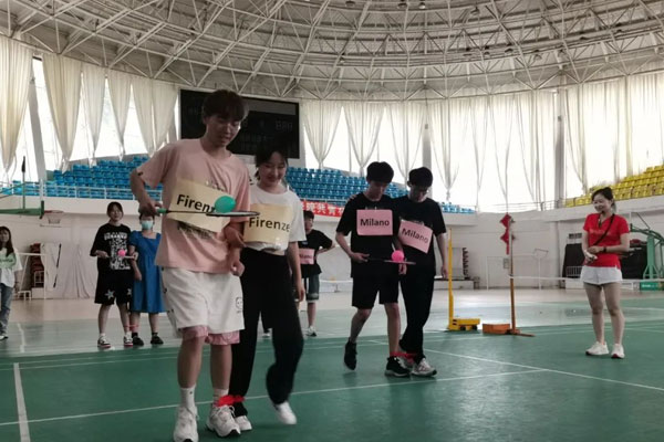 游戏-喊数抱团,裁判随机喊出意大利语数字,同学们迅速反应抱团。集中同学们的注意力,同时还发展了同学们的分析、判断和反应能力,未成团的同学淘汰,受“罚”(可才艺展示可走猫步)。