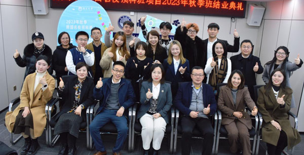 1月19日下午,南昌大学韩国名校预科班项目2023年秋季班学生结业仪式在学院313会议室隆重举行。副院长宋文杰、项目拓展与管理办公室主任刘亚东、项目教师、管理人员及2023年秋季班全体学生和家长参加了结业仪式。