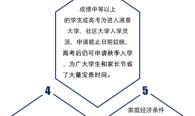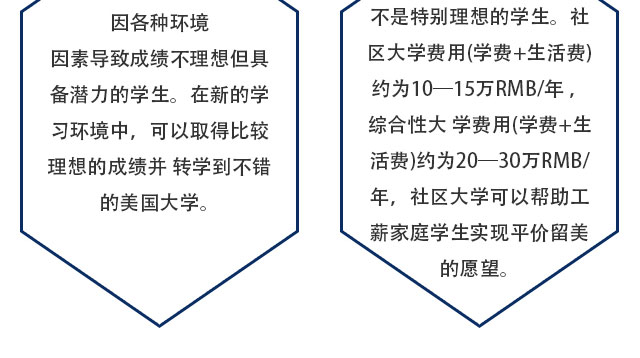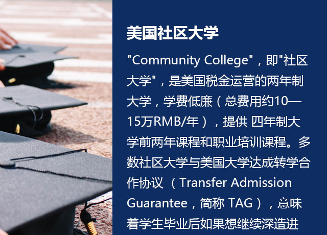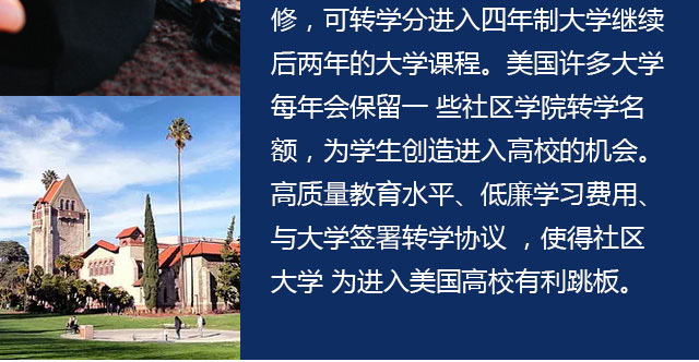 关于美国社区大学转学,对于想上高校但目前还不具备相应的SAT和TOEFL成绩的高中毕业生来说是一个捷径。成功走这条捷 径的前提是学生要有比较好的自制力,有明确的目的和妥善安排自己学习和生活的能力。