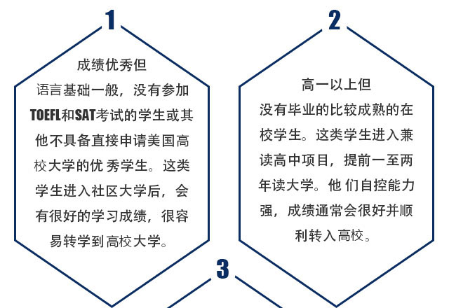 对于不具备条件直接进入大学的学生而言,通过美国社区大学转学的方式进入高校是一条非常好的途径。原来只能上一般大学的,通过转学可以进入高校;原来成绩很一般的,也可以通过这个项目进入一所不错的美国大学。